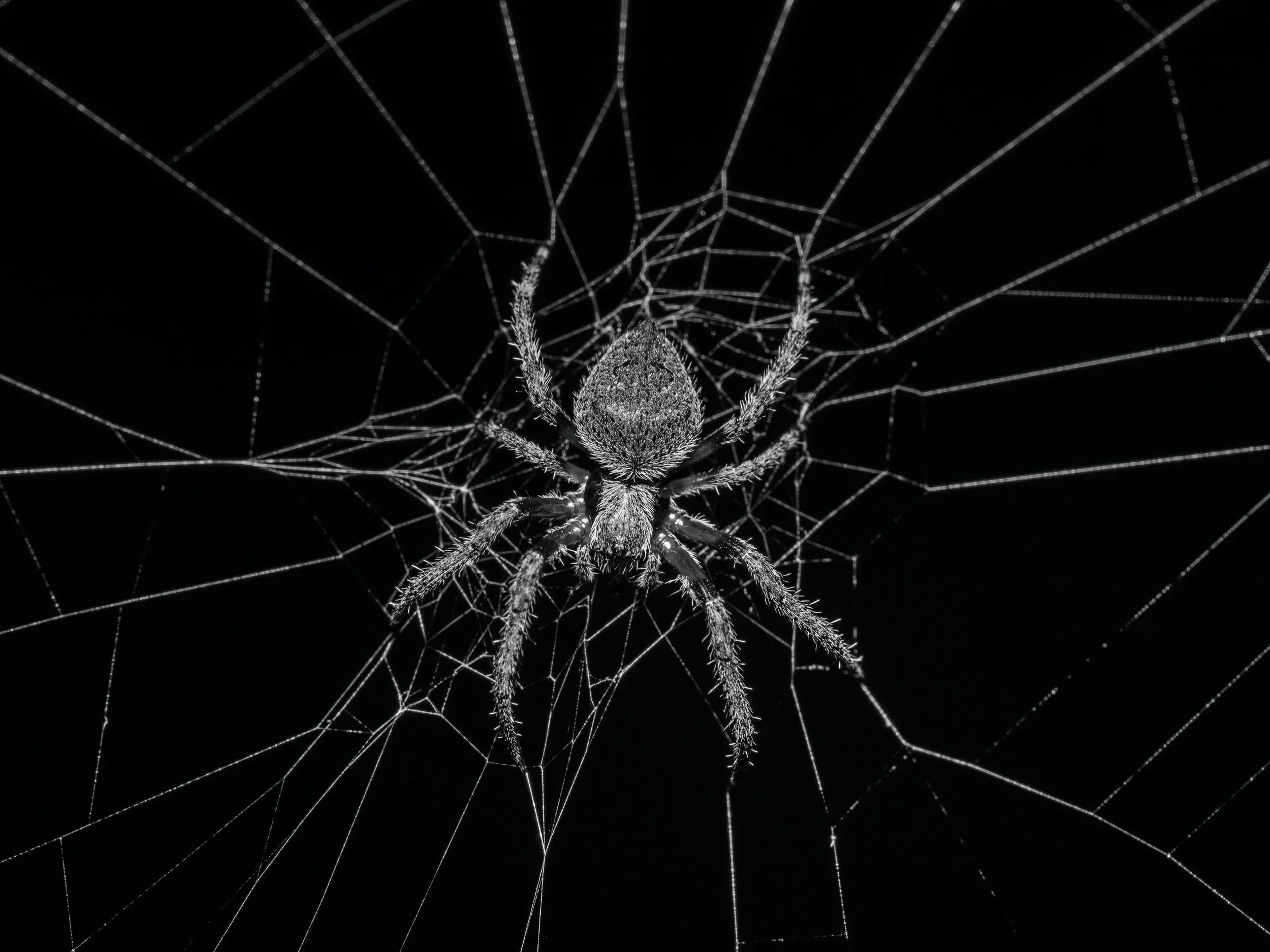 It quickly becomes clear that we are stuck. The more we struggle, the tighter the web clasps us. Sticky, thick strands with tensile strength beyond their fragile appearance would suggest become more and more tangled around us. We struggle for what seems like minutes, hours, how long has it been? We alternate between exhaustion and renewed strength, until futility sets in. Eventually we become limp, motionless, out of ideas...... helpless.
